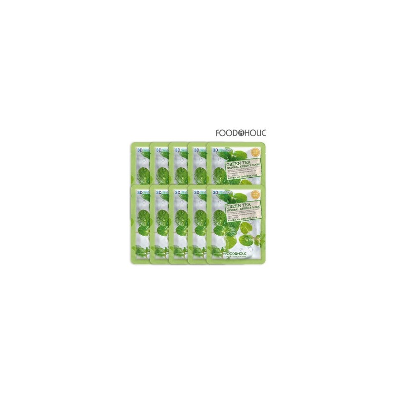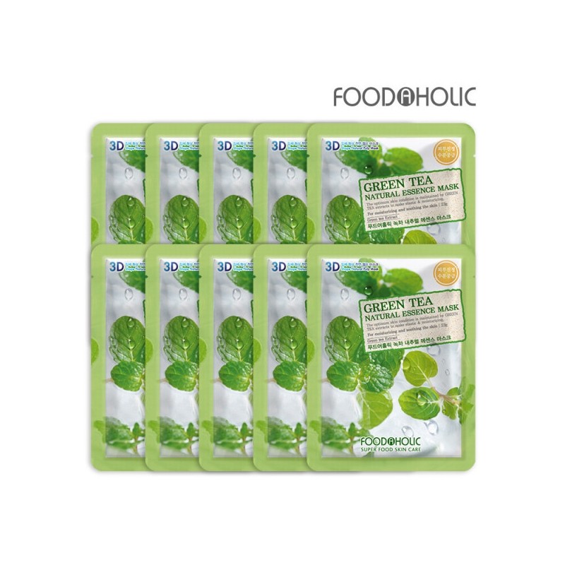 Foodaholic 3D Green Tea Natural Essence Mask Pack (10 sheets) / 푸드어홀릭3D 녹차 내추럴에센스 마스크팩(10매)