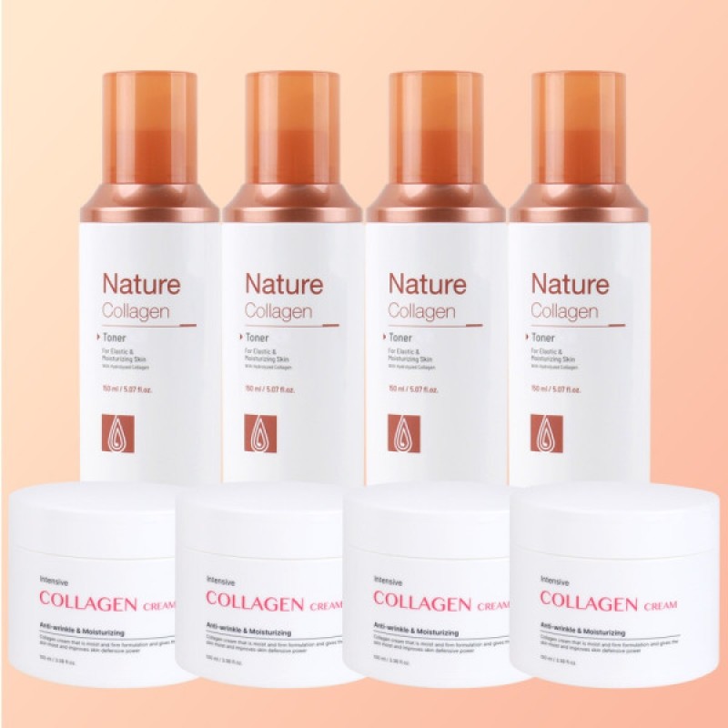 Foodaholic Nature Collagen Basic 8-piece package / 2 toners + 2 emulsions + 4 creams / 푸드어홀릭 네이처 콜라겐 기초 8종 패키지 토너2+에멀전2+크림4