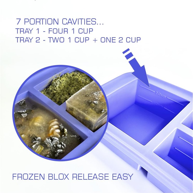 - ✅【STRONG~DURABLE~REUSABLE】FOODBLOX soup freezer trays made of 100% food grade silicone mold kit, BPA-Free, non toxic, non stick. Safe for Fridge, Freezer, Oven (no lid). Use in temps -40℃ up to 230℃