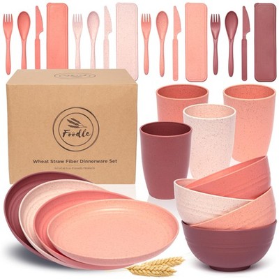 FOODLE Wheat Straw Dinnerware Set - BPA Free & Safety Tested - Unbreakable, M...