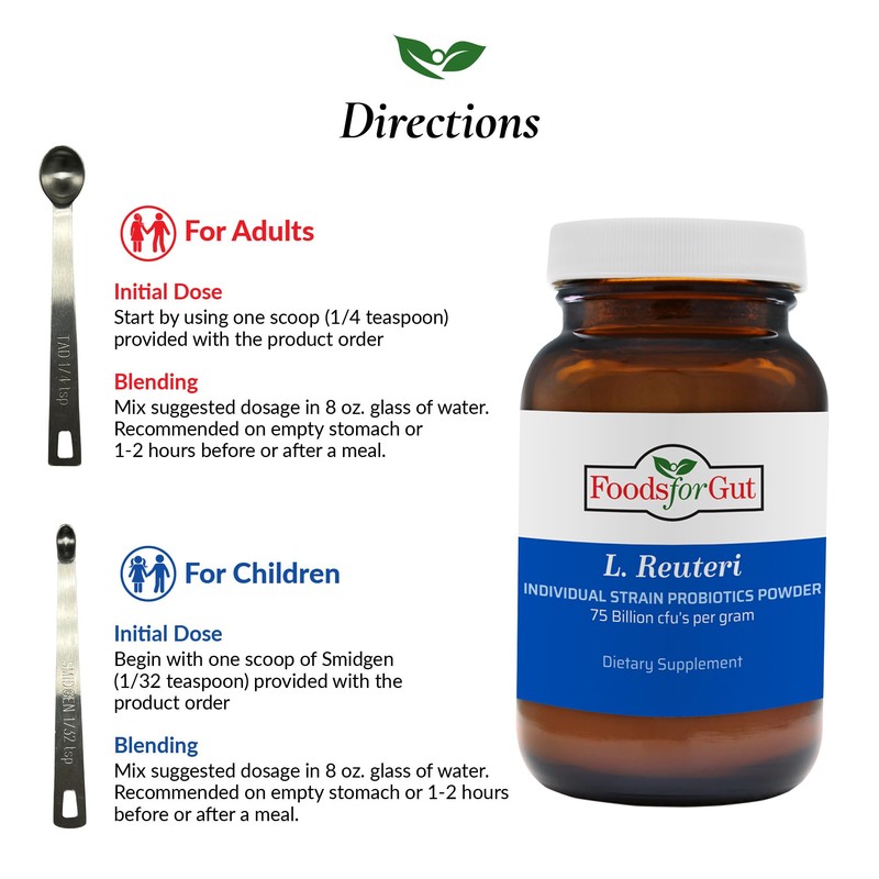 Foods For Gut Lactobacillus Reuteri Probiotic Powder 75 Billion cfu's | Made in USA | NO Additives | Digestive & Immune Support | High Potency | L. Reuteri | 30 Grams (1.05 OZ)