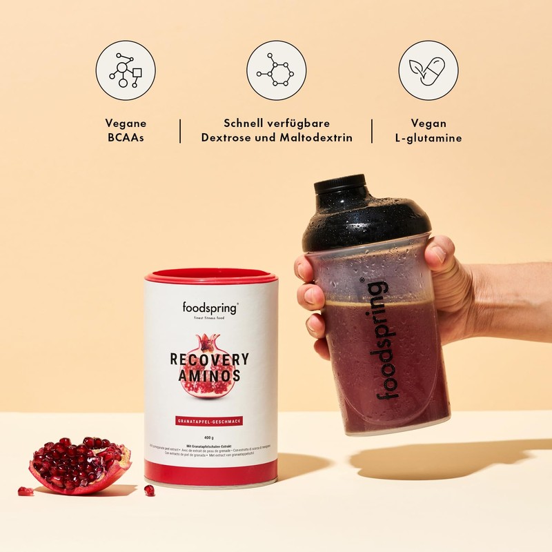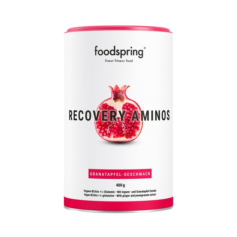 foodspring foodspring Recovery Aminos C Pulver mit L-Glutamin, BCAAs, Dextrose & Pflanzenextrakten C Granatapfel-Geschmack C 400 g