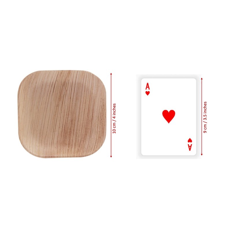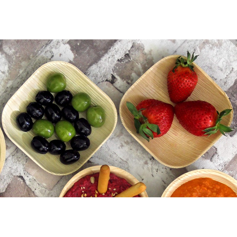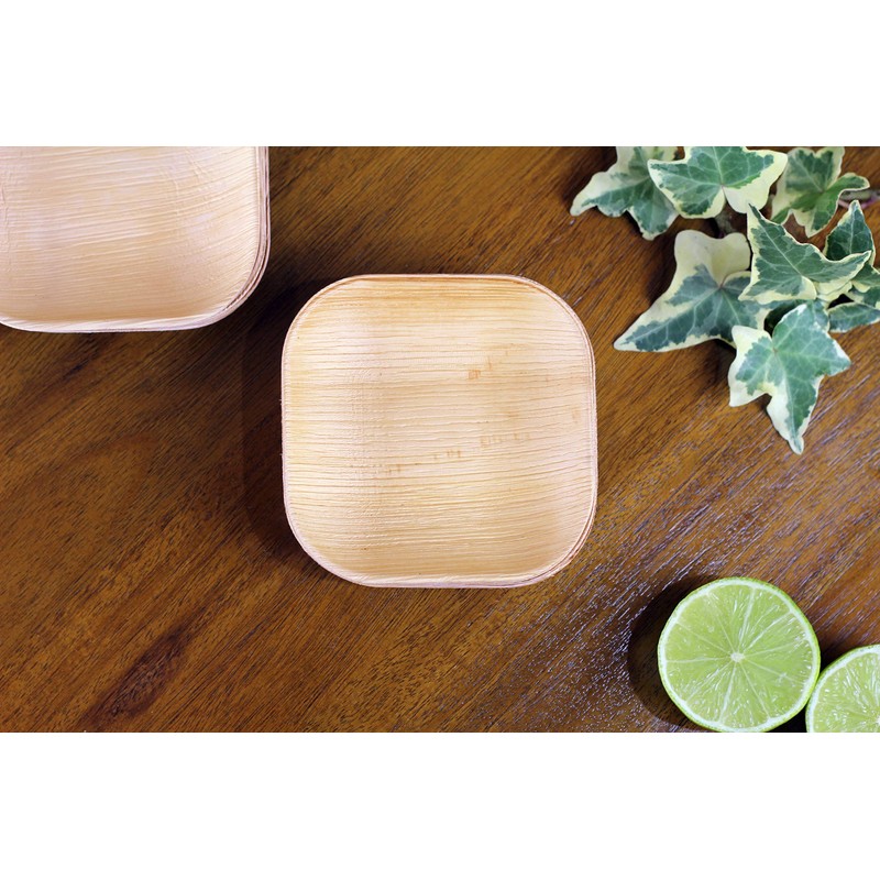 FOOGO Green 25 Disposable Mini Palm Leaf Plates, XSmall 4"(10cm) Mini Dip Square, Dips Sauces and Ketchup Pots, Eco Friendly Bio compostable Plates, Like Dip Bowls Wooden Plates, Party Wedding