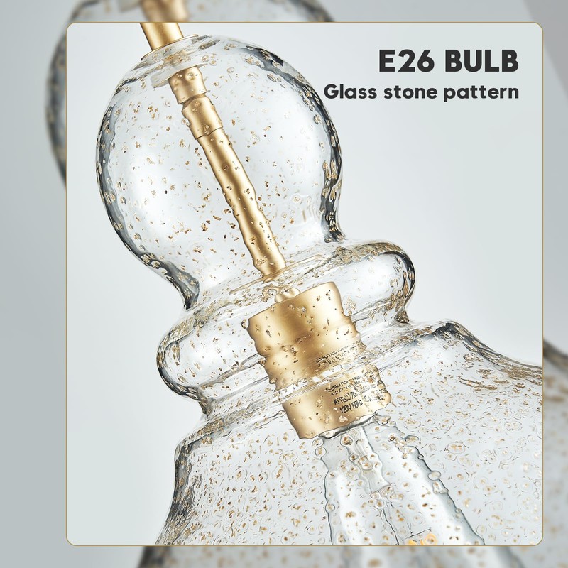- GOLD GLASS PENDANT LIGHT FOR KITCHEN ISLAND - The hand-blown seeded glass pendant lights with the hand-beating process to produce a gold sand clear glass lampshade,each product is individually mouth-blown and hand finished by skilled craftsmen. Gives you a timeless retro vintage touch, and a clean contemporary aesthetic in your house, adding a vibrant vibe to any room. Especially kitchen sink, kitchen island, bar or dining room, breakfast bar