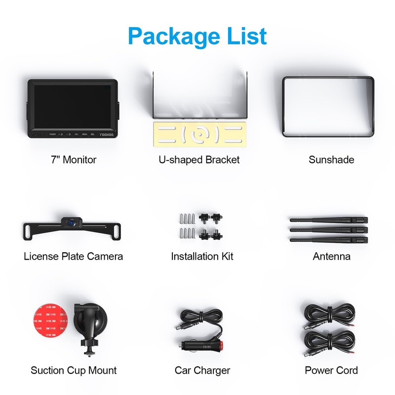 - Ultra HD Picture Quality: This system adopts CCD image sensor with embedded processing chip to avoid the problem of shaky and blurred images when driving on bumpy roads. It will improve the color noise of the image output, so you can see what you see on the monitor as if with your own eyes, and transmits real-time 1080P HD picture quality. And it can switch to dual-split screen, you can add 2nd camera if need