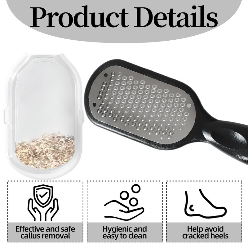 Foot Files Foot Grater Hard Skin Remover Foot Blade Callus Remover with Dead Skin Catcher for Mess-Free Pedicures, Heel Scraper for Cracked Heel Treatment, Wet & Dry Use Feet Rasp,Black