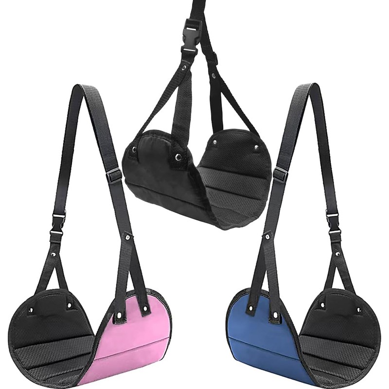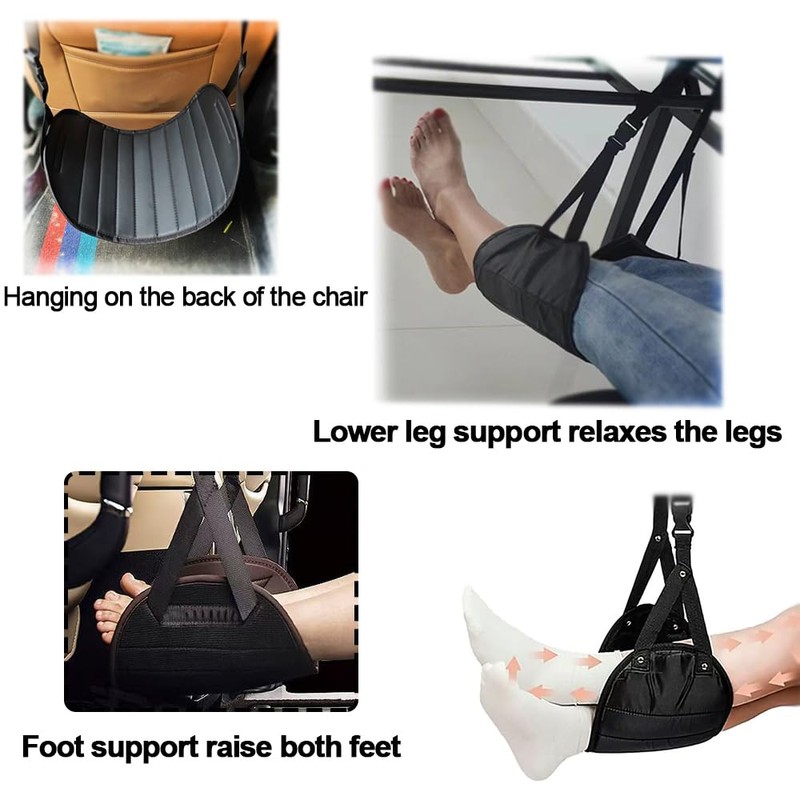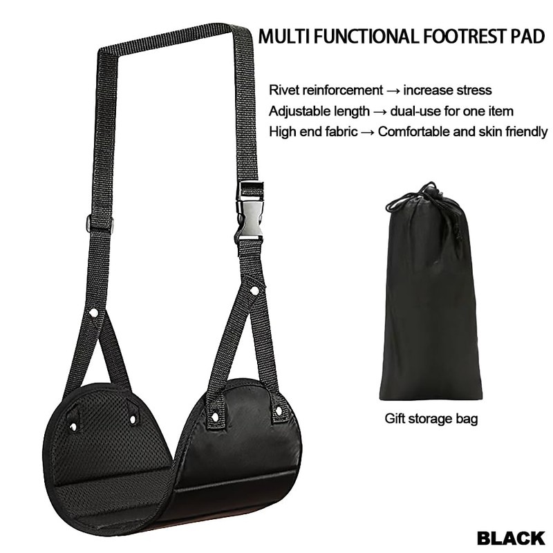 Upgrade your travel comfort with this Portable Airplane Foot Hammock – the perfect adjustable footrest for long flights, offices, cars, and home use. Designed to relieve pressure on your legs, knees, and lower back, this lightweight foot hammock keeps your feet elevated for better circulation and relaxation. Made with premium breathable canvas, soft foam padding, and a sturdy waterproof Oxford backing, it ensures lasting comfort and support. The adjustable straps provide a universal fit for all heights, whether you're tall or short. Easy to set up – simply attach it to a tray table and adjust to your preferred position. Compact and foldable, it transforms into a travel-friendly size that fits in any bag. An essential accessory for frequent flyers, office workers, and anyone seeking comfort on the go.