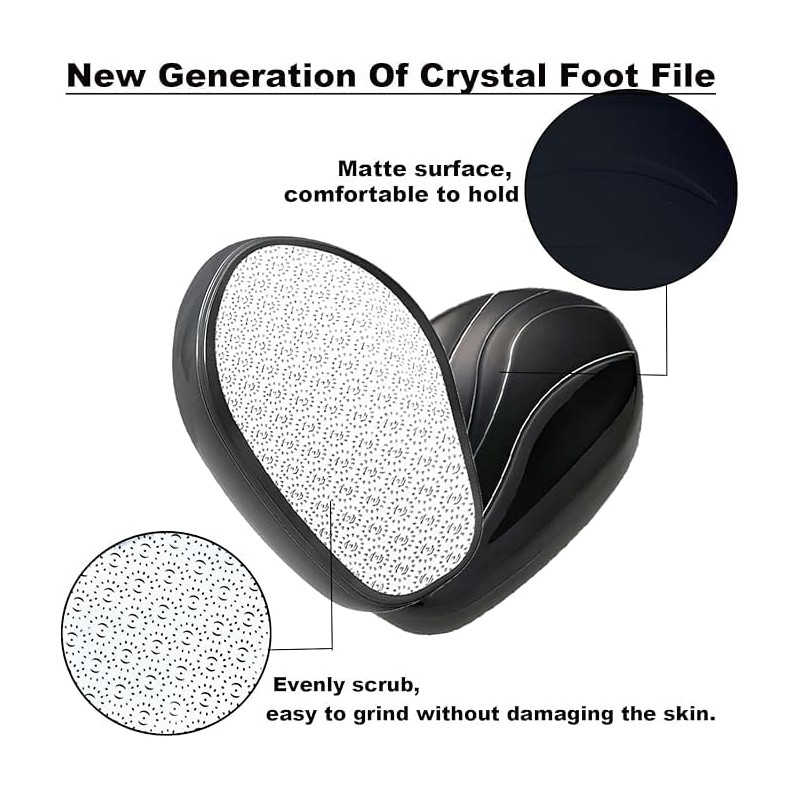 - --Convenient to use and easy to clean--Just soak the soles of your feet to soften them, then use our crystal foot file to let you wave goodbye to dead skin, hard skin and calluses; simply rinse with water after use, and it can be reused .