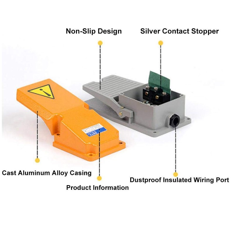 - SAFE AND PRACTICAL: Foot pedal switch adopts silver contacts, with good electric conductivity. Adjustable mechanical memory structure, sensitive to large currents. Internal thickening pressure spring extends service life of the switch.