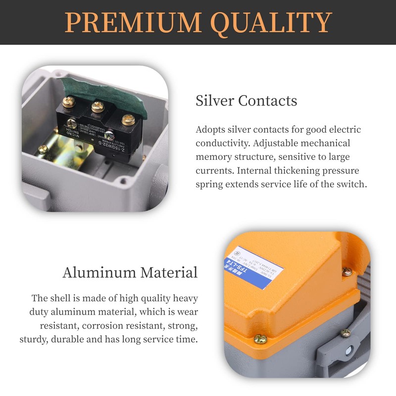 - PREMIUM QUALITY: The shell of this foot switch is made of high quality heavy duty aluminum material, which is wear resistant, corrosion resistant, strong, sturdy, and has long service time.