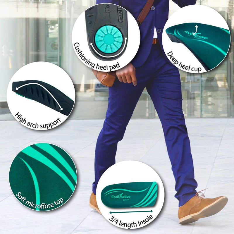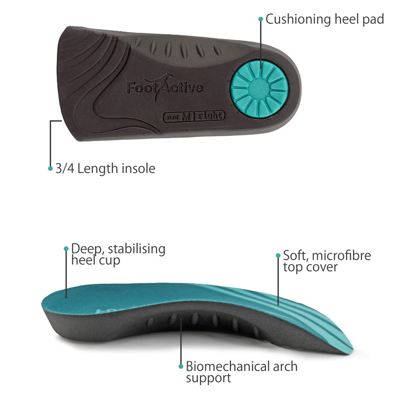 • PREMIUM NHS-APPROVED 3/4LENGTH ORTHOTIC INSOLE – Designed by our in-house team of dedicated physiotherapists and podiatrists, FootActive Comfort Insoles assist with the effective treatment and relief of Heel Pain, Heel Spurs, Plantar Fasciitis, Ball of Foot Pain, and Achilles Tendonitis.