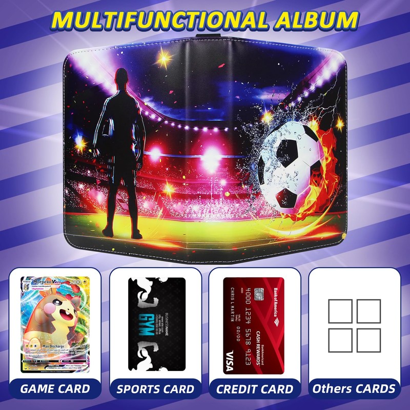 - 【Football card binder】--Our trading card holder have 4 pocket, 50 double-sided, which can hold up to 400 cards and provide plenty of space to get all your cards well organized instead of messy.