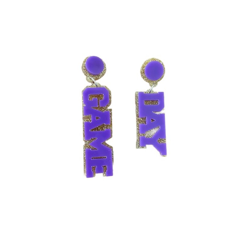 - Vibrant Game Day Earrings in Team Colors: Show off your team pride with these acrylic dangle earrings, designed in bold colors that represent your favorite sports team. The statement 'GAME DAY' adds a fun touch to your game day look, making them perfect for any sporting event or celebration