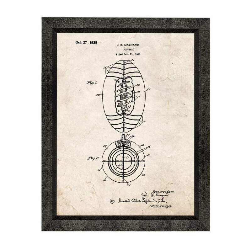 Own a piece of History with this great Drawing reproduced from the original US Patent for a Football. It was invented by Maynard John E and filed on October 11, 1923. It was issued on October 27, 1925 by the United States Patent and Trademark Office.