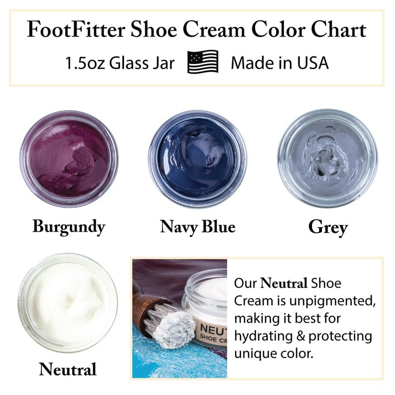 - AVAILABLE COLORS: We offer our shoe creams in 9 different base colors to suit your shoe needs, Black, Light Brown, Dark Brown, Medium Brown, Neutral, Tan, White, Navy Blue, and Burgundy. Neutral does not contain any color pigments, making it safe on most colors.