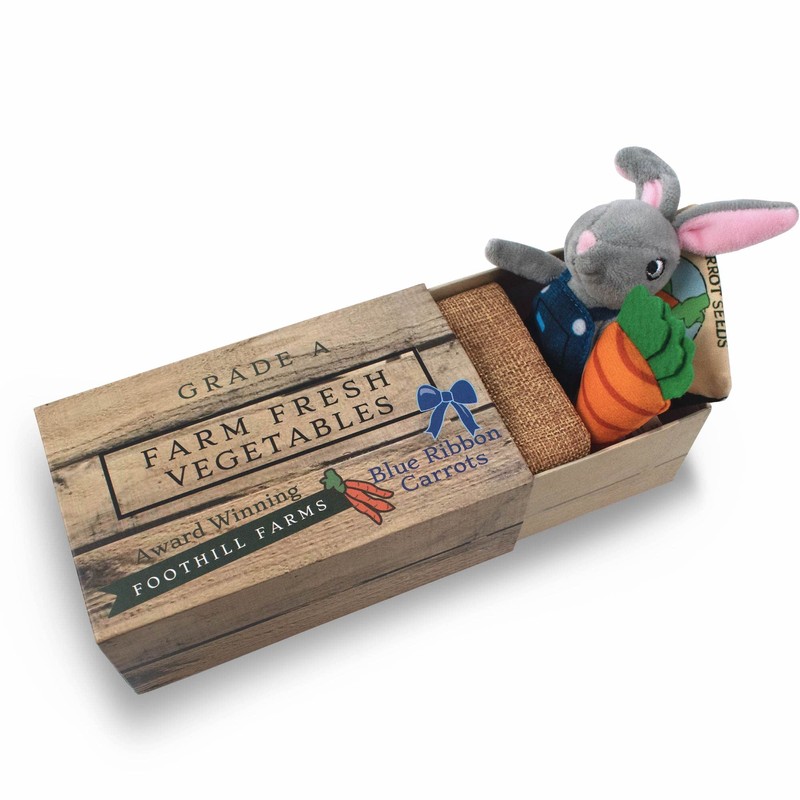 Foothill Toy Co. Animals in Boxes - 'Hopper The Garden Rabbit' Playset with Stuffed Bunny in a Vegetable Crate Bed