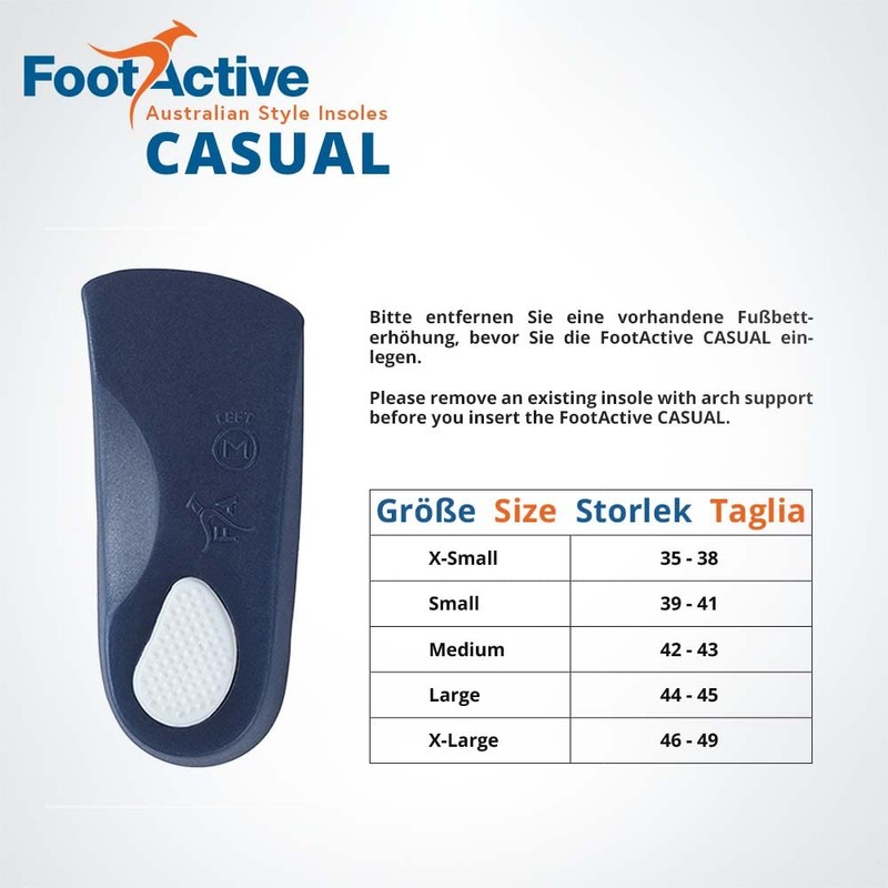 Footlogics Unisex Casual 3/4 Length Orthotic Insoles, Medium