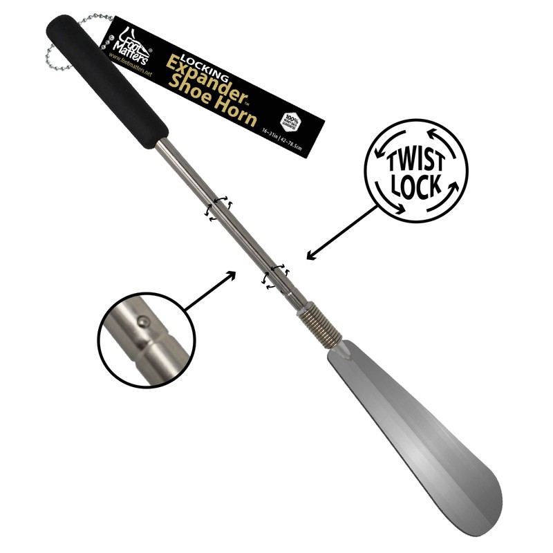 FOOTMATTERS Expander Shoe Horn Extra Long Handle - Twist to Lock - Extends 16 to 31 inches - 2 Pack