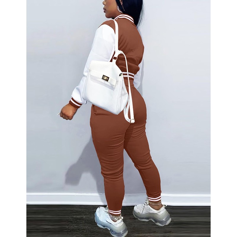 - Fashionable Outfits Easy To Style: The varsity jacket tracksuits are always on trend. You can pair the fashion set with sneakers or casual shoes for a comfortable and stylish look. It can also be matched with some trendy accessories to make you look more fashionable.