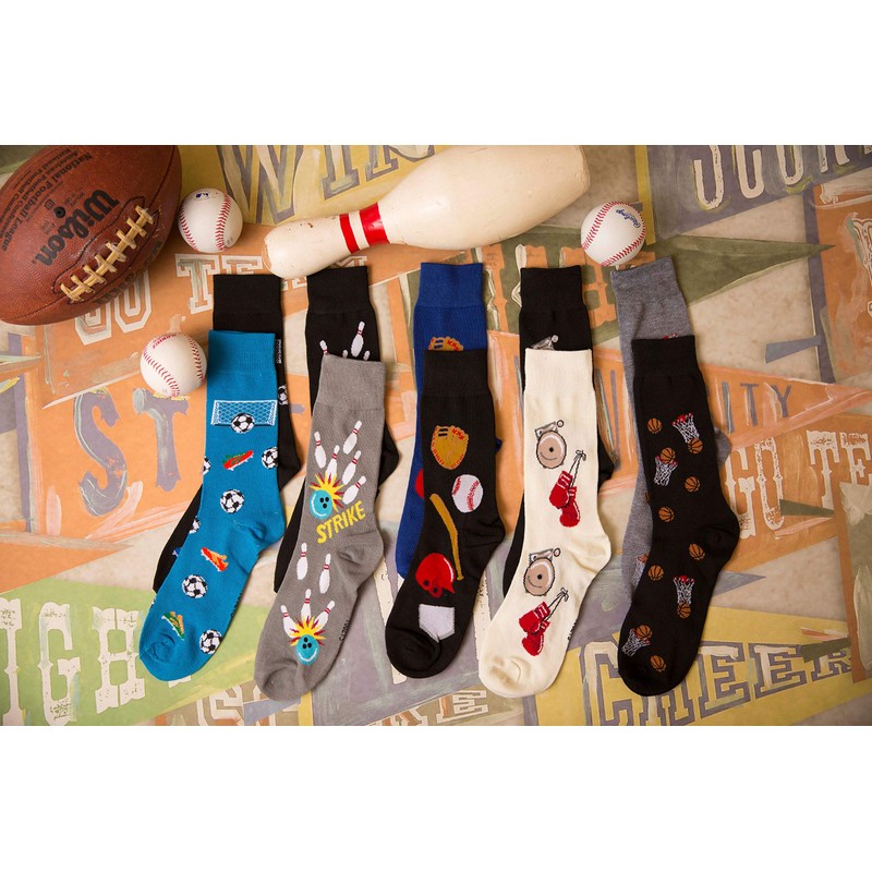 - Show them what you’ve got with our Sports collection of men’s novelty crew socks; Printed in fun sporty game prints, these socks will help you get your head in the game whether you are out there playing or sitting on your couch