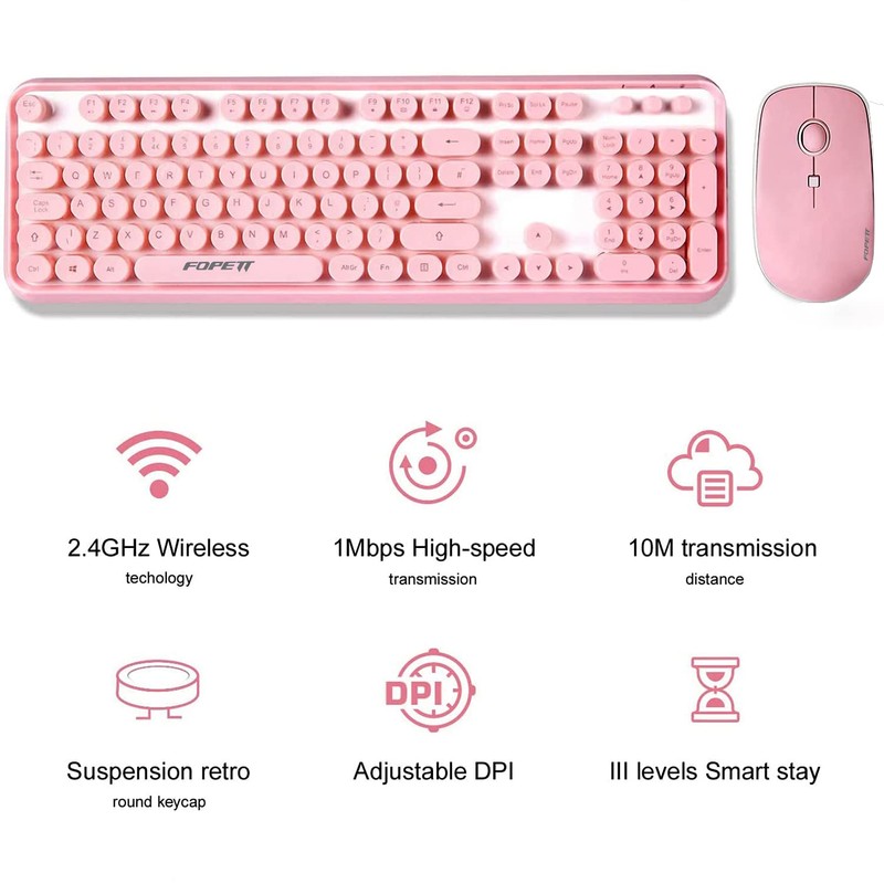 FOPETT Keyboard and Mouse Sets Wireless, Reliable 2.4 GHz Connectivity for PC,Laptop,Smart TV and More (Pink)