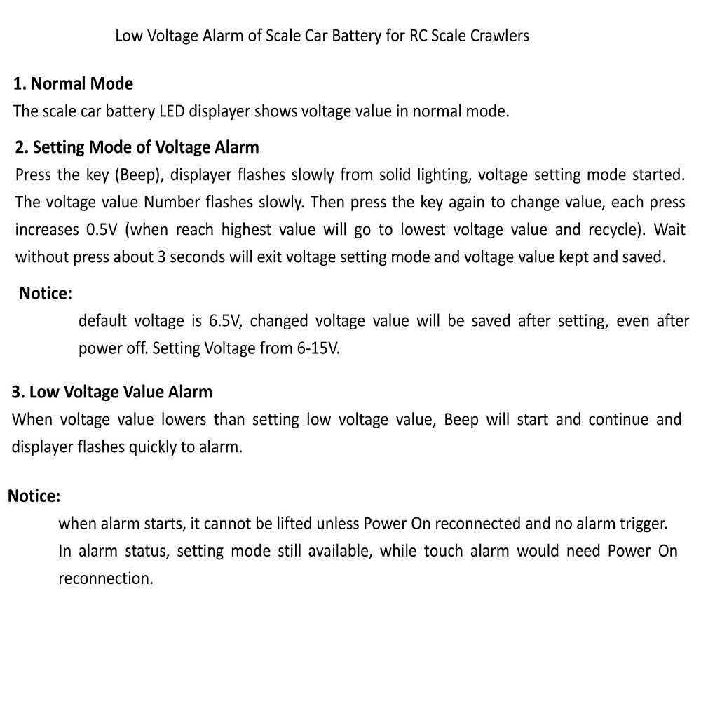 For 1/10 RC TRX4 Axial SCX10 90046 6V-15V Low Voltage Alarm Lipo Battery Decor for 1/10 RC TRX4 Axial SCX10 90046