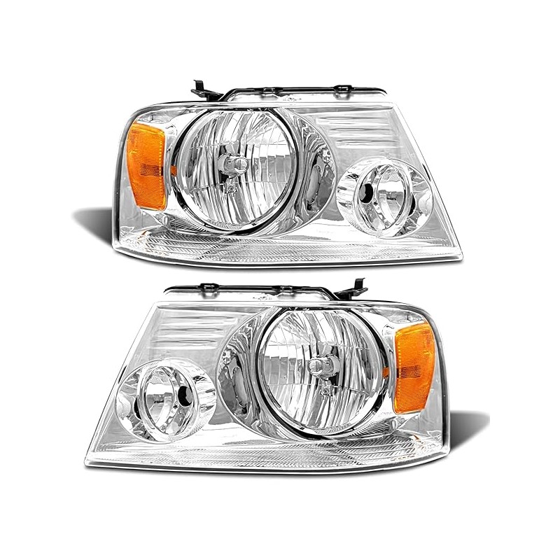 for 2004 2005 2006 2007 2008 F150 Headlight Assembly Compatible with 2004-2008 Ford F150 Pickup/ 2006-2008 Lincoln Mark LT Clear Lens Chrome Housing Amber Reflector Headlamp Replacement