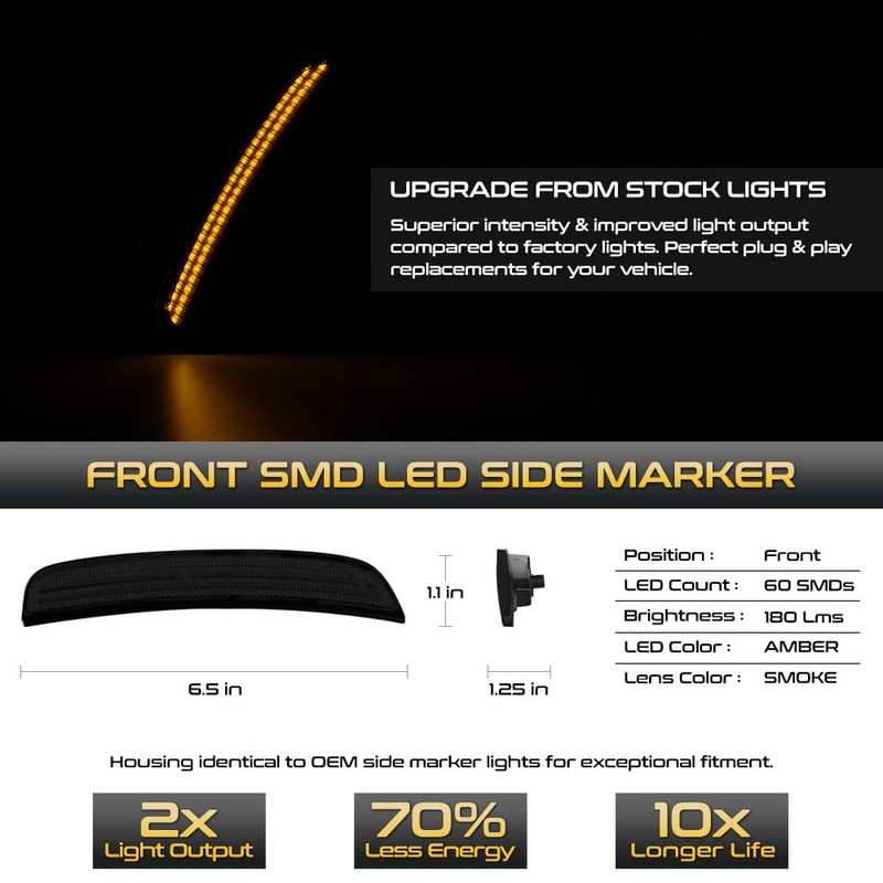 For 2015-2023 Chrysler 300 LD Smoke Lens Amber LED Front Bumper DRL Side Marker Light Fender Parking Lamp, Driver & Passenger Side