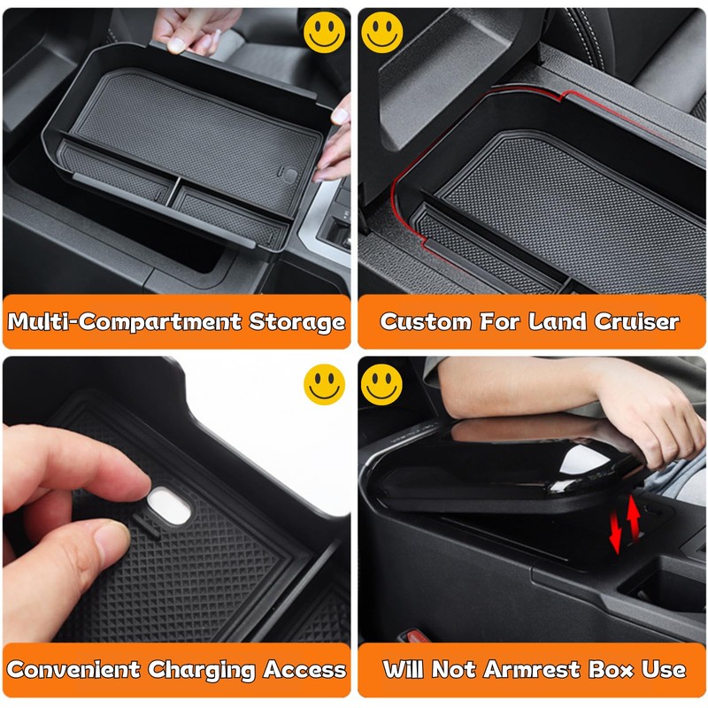 - Custom Fit for Car Models - The Center Console Organizer is designed specifically for Toyota Land Cruiser Prado 1958 250 from 2024 to 2025 (It does not fit the armrest with the cool box). It ensures a snug fit that perfectly complements your vehicle. NOTE: It only fits Regular Armrest Box vehicles. It does not fit cool-box-equipped vehicles. Please Confirm Your Vehicle Configuration Before Purchasing!