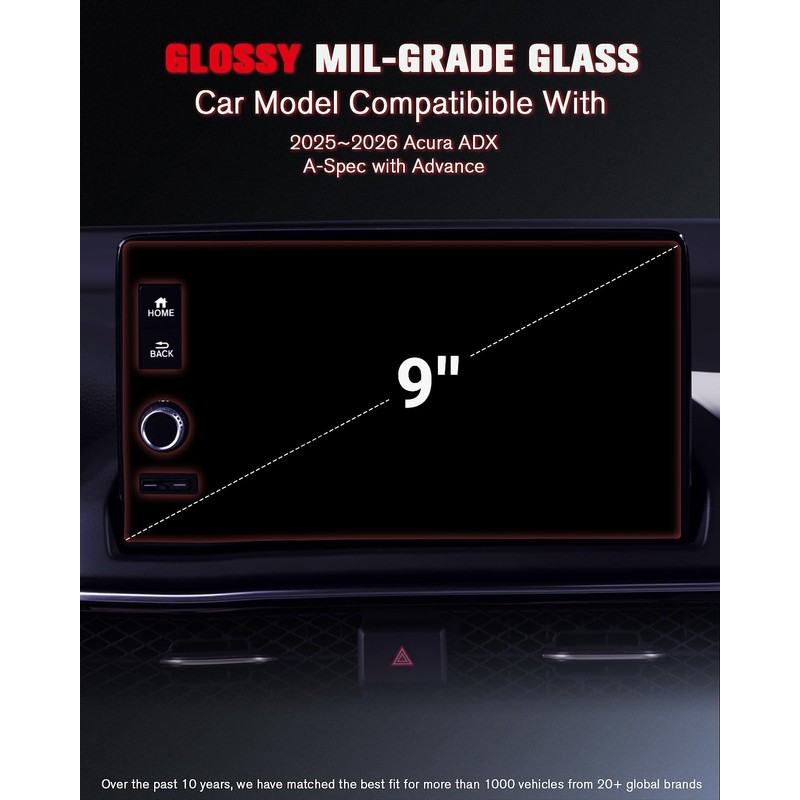 For 2025~2026 Acura ADX A-Spec with Advance 9 Inch Glossy Screen Protector - [More Clear& Smooth] - Mil-Grade 9H+ Tempered Glass - Touchscreen *1