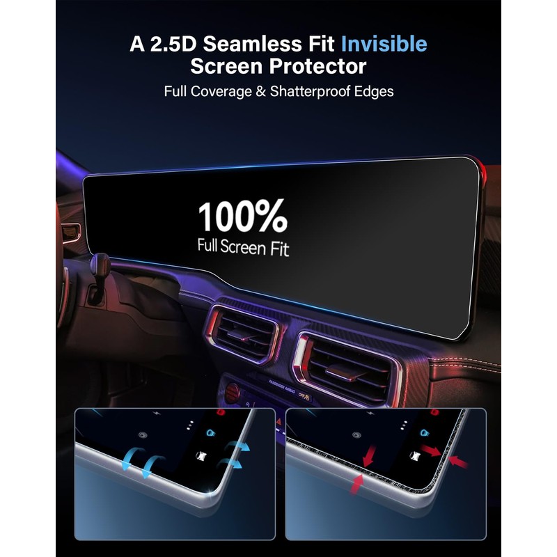 WEIPIN For 2024-2025 Mustang Screen Protector 13.2+12.4 Inch All-in-One Nano Anti-Scratch Ultra-Tough Touchscreen *2 Accessories - No More Scratch&Fingerprint