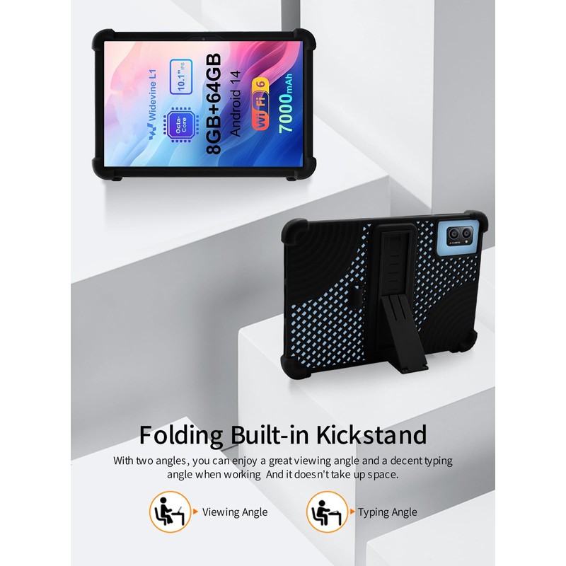 for AWOW UTBook_14 10.1 inch Android Tablet Case,BOVUGAC Soft Silicone with Capacitive Pen,Heat Dissipation Design,Adjustable Stand,Shockproof,Kids Friendly(Black)