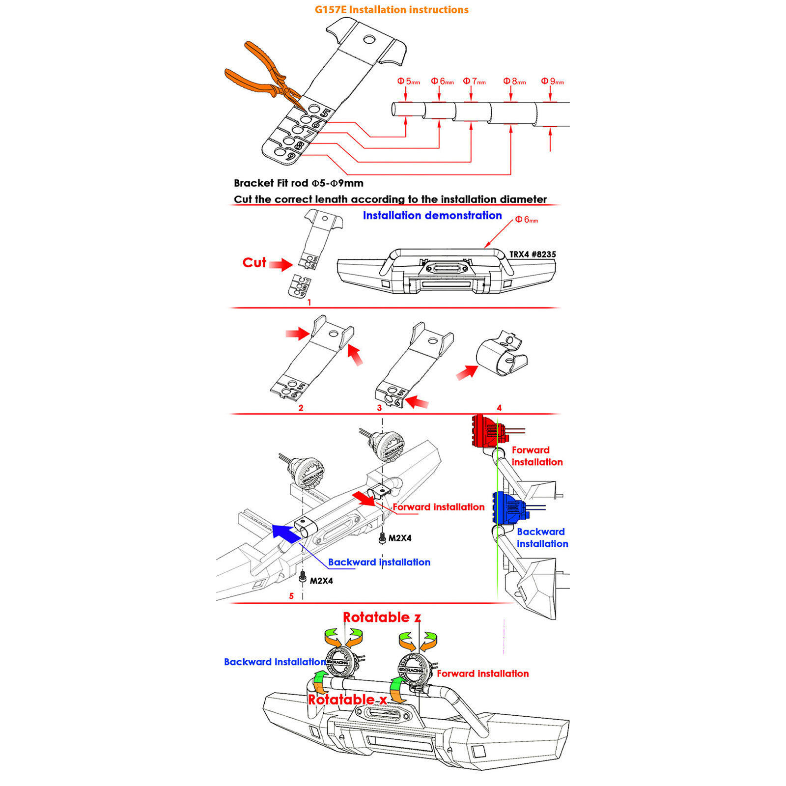 For Axial 2Pack LED Light Headlight Spotlight For Axial TRX4 SCX10 1/10 1/8 RC Crawler Car