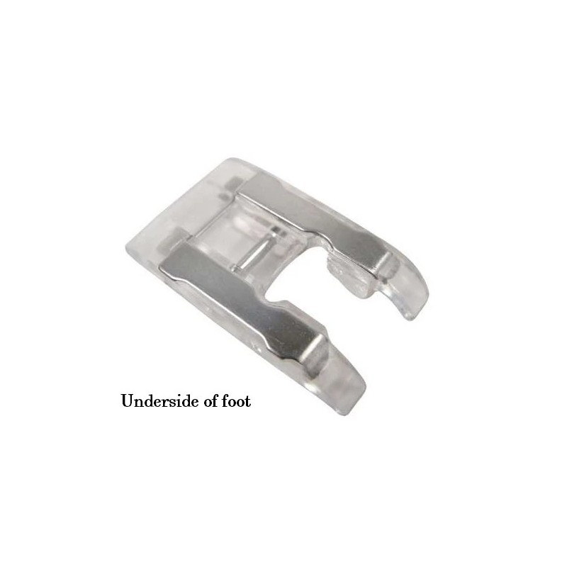Ideal for precision embroidery, applique, cutwork and monogramming. Nothing stands in the way of your creative vision. The cutout on the underside of the foot accommodates satin stitching and the clear plastic ensures greater visibility while sewing. The bottom of the foot has a wedge shaped indentation, which allows even satin stitching to glide under the foot without dragging. The angle in the indentation makes it possible to turn curves easily. The toes of the foot are shorter, compared to a regular zigzag foot, for greater maneuverability while sewing (you can turn the fabric more easily for smoother stitching lines, an important asset when embellishing fabric)