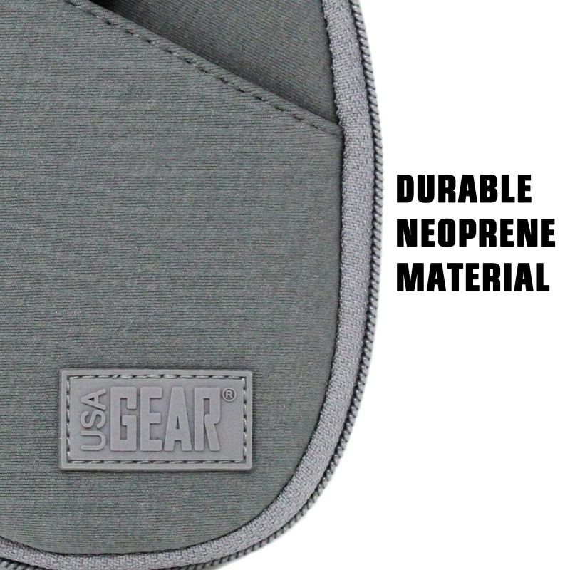 Store and organize your camera, and more electronics with USA Gear's CP4 travel case. The practical design and neoprene construction protect your device while the various pockets on the inside are perfect for storing cables and other accessories. Keep your gear safely stored in the case while on the go.- Scratch Resistant Interior