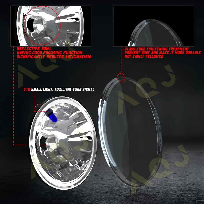 - High Brightness:7 inch round light housing adopt glass lampshade unique design, improved beam pattern,with the addition of H4 LED bulbs.1:1 design replaces the original halogen shell design to maximize your view of the road. Truer and whiter light for a clearer view, longer to help you see further down the road.