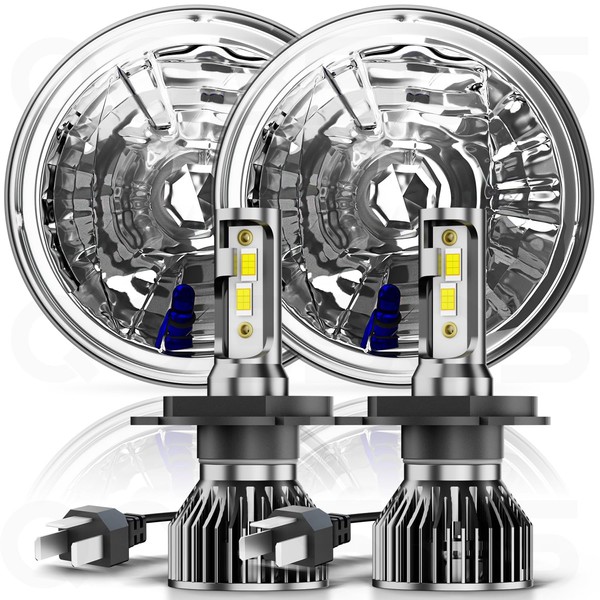 For Chevy C10 1967-1972 7 inch LED Light Bulbs Round Hi/Lo Lamp,H4/9003+7 Inch H6024 Round Light Bulbs Sealed High Low Beam Glass Housing, 4PCS