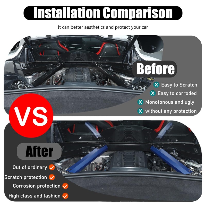 - Compatible Models:The Engine Compartment Pull Bar Trim Strip Accessories compatible with Corvette C8 2020 2021 2022 2023 2024+.The size of the original car is customised. (Please note that the color shown in the photo may differ slightly from the actual product. Thank you for your understanding).In order to ensure that the accessories you need are the same as our products, please confirm your car model before purchase.