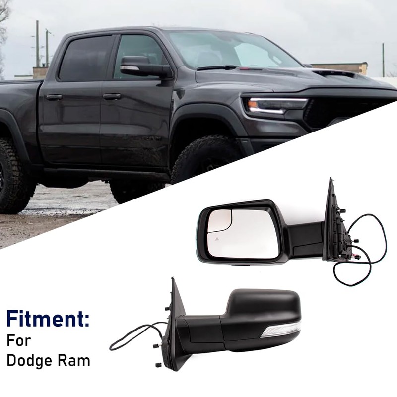 - Fit Dodge Ram 1500 2019-2022 assembly door mirror, one piece Passenger Side RH