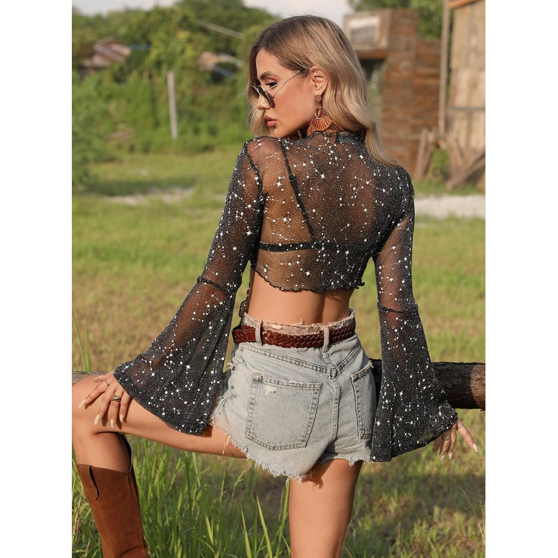 - Versatile Styling - Ideal for various occasions such as casual outings, music festivals, dance parties, themed events, bar nights, beach parties, and weekend get-togethers. This long sleeve crop top pairs perfectly with your cami top, bikini top, skinny pants, jeans, shorts, or skirt.