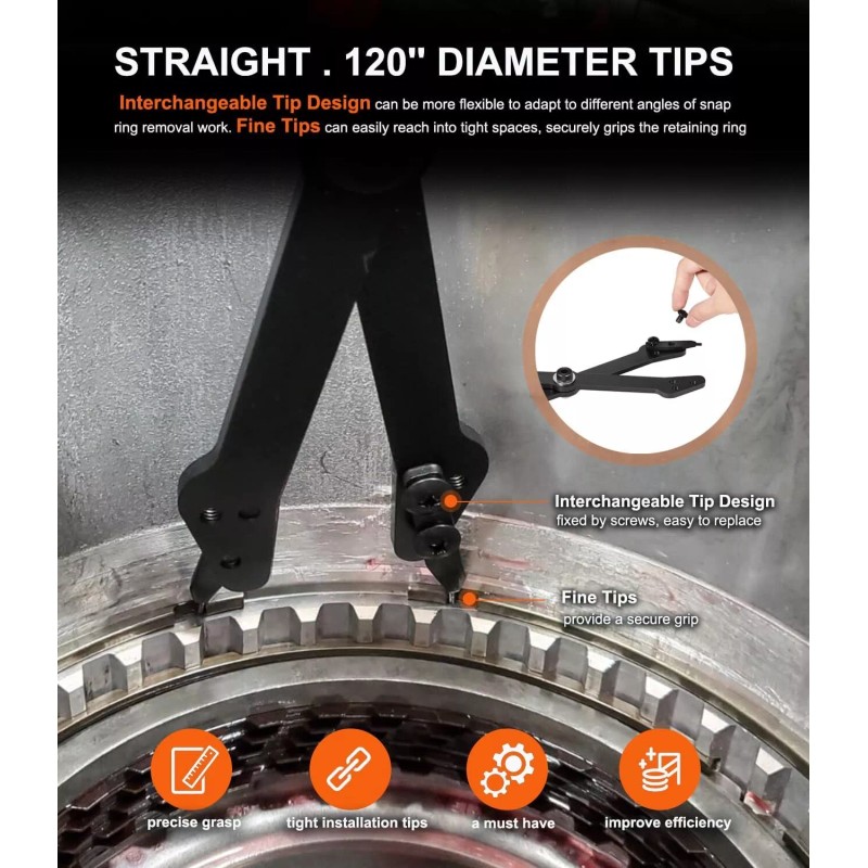 1) The straight .120" diameter tips provide a secure grip on retaining rings, reducing the risk of slipping or damaging the ring or surrounding components