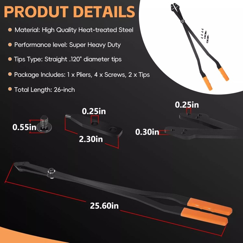 4) heavy duty pliers is constructed from heat-treated, high-carbon steel, this snap ring pliers ensure long-lasting durability and strength, even under heavy use