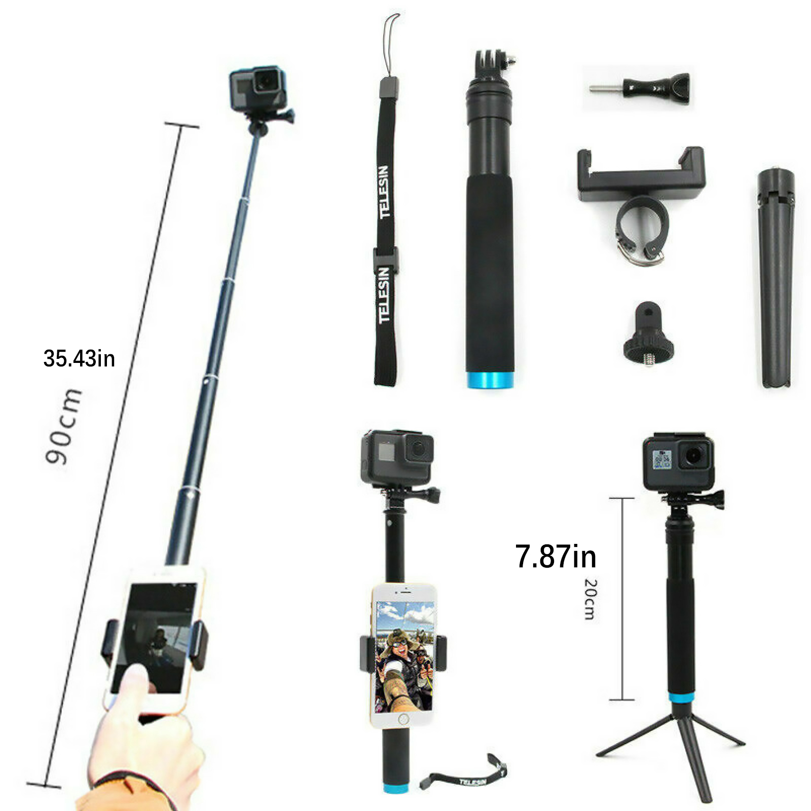 For GoPro Hero 7 6 5 4 Aluminum Selfie Stick Holder Tripod Phone Strap For GoPro Hero 7 6 5 4 Camera G
