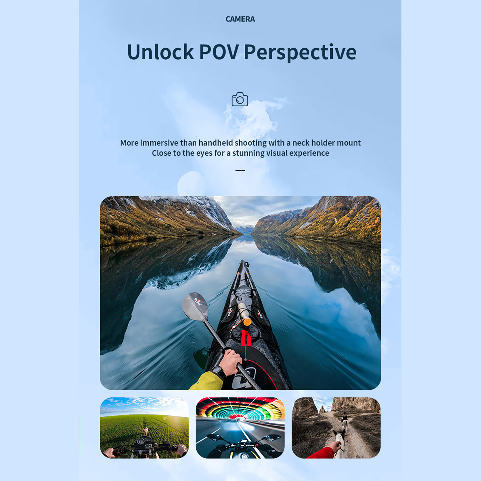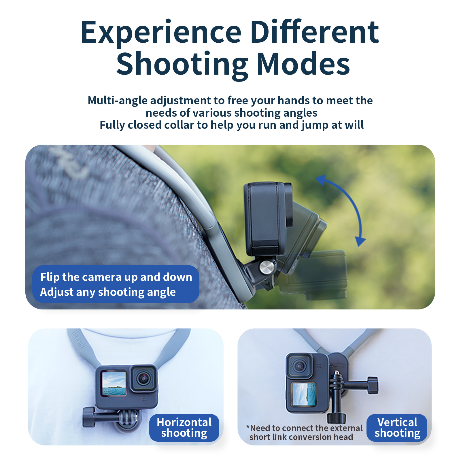 2.Free your hands. Quick release button helps you remove the neck hold mount. Magnetic rotating interface quick to wear and easy to install.