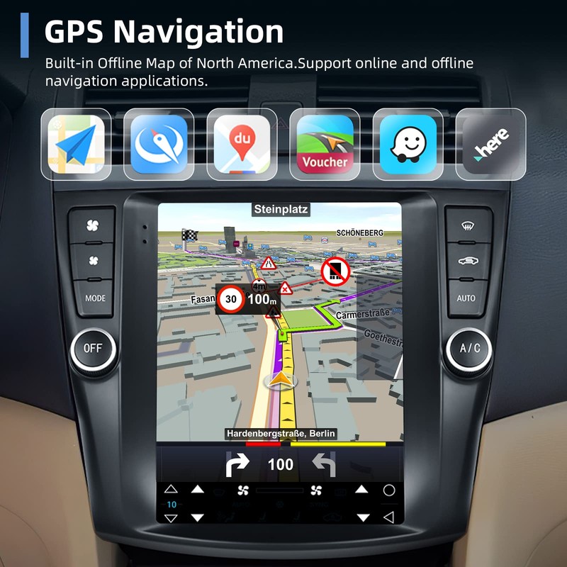 for Honda Accord 2003 2004 2005 2006 2007 Android Car Stereo Radio,podofo 9.7 Inch Vertical Touchscreen Bluetooth Radio in Dash Navigation GPS Units with Phone Mirror Link WiFi FM/RDS Backup Camera