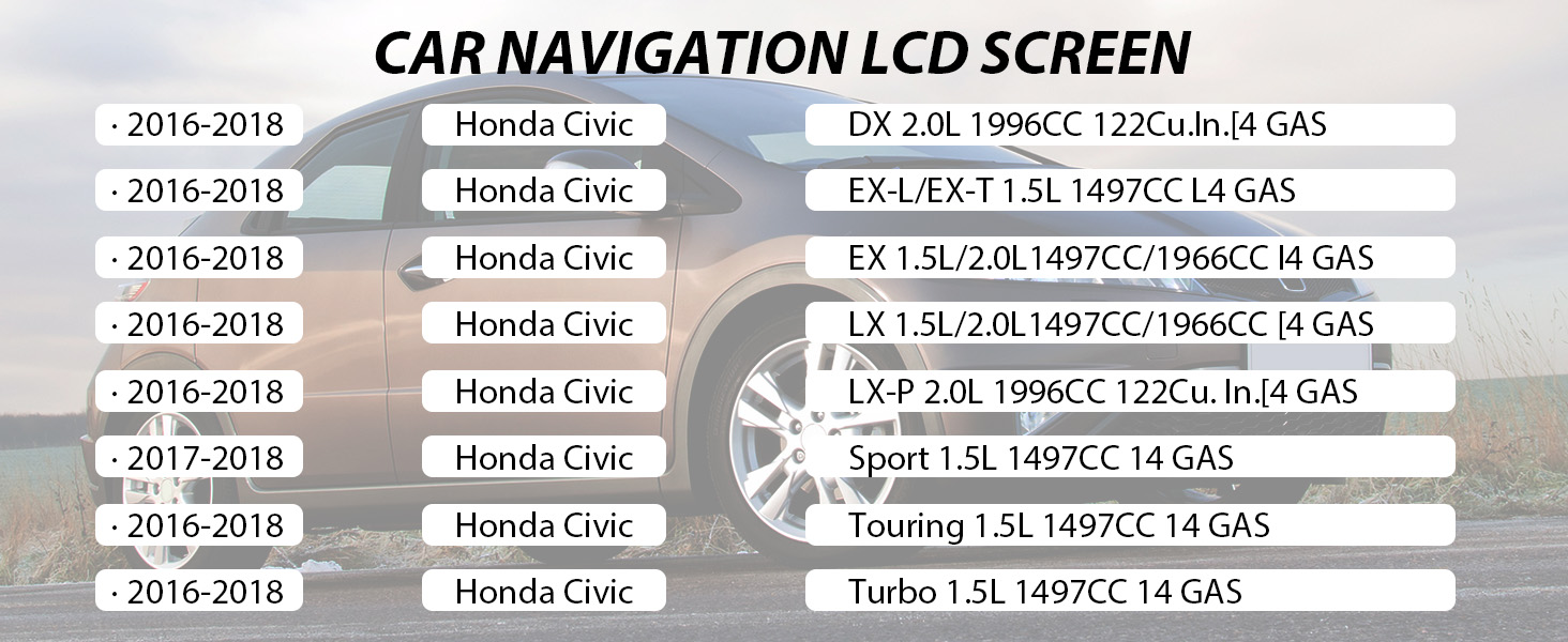 For 2018 Honda Civic SPECIFY MODEL/TRIM before buying