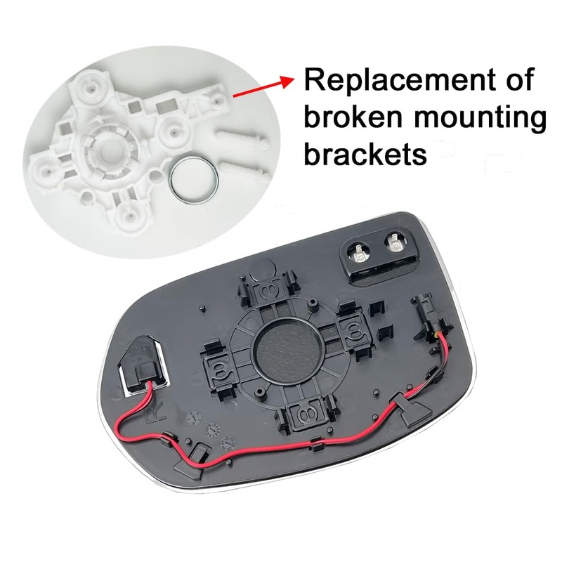 - parts:This includes the all-important mounting brackets, as there is a possibility of the brackets breaking when removing the old side mirror!The same mounting point as the factory mirrors glass. Completely suitable for existing wires and interfaces