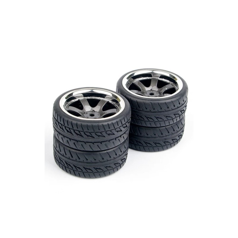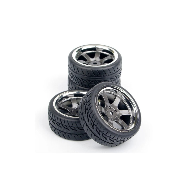 High performance rubber tires must be mounted and glued to the wheel by yourself.