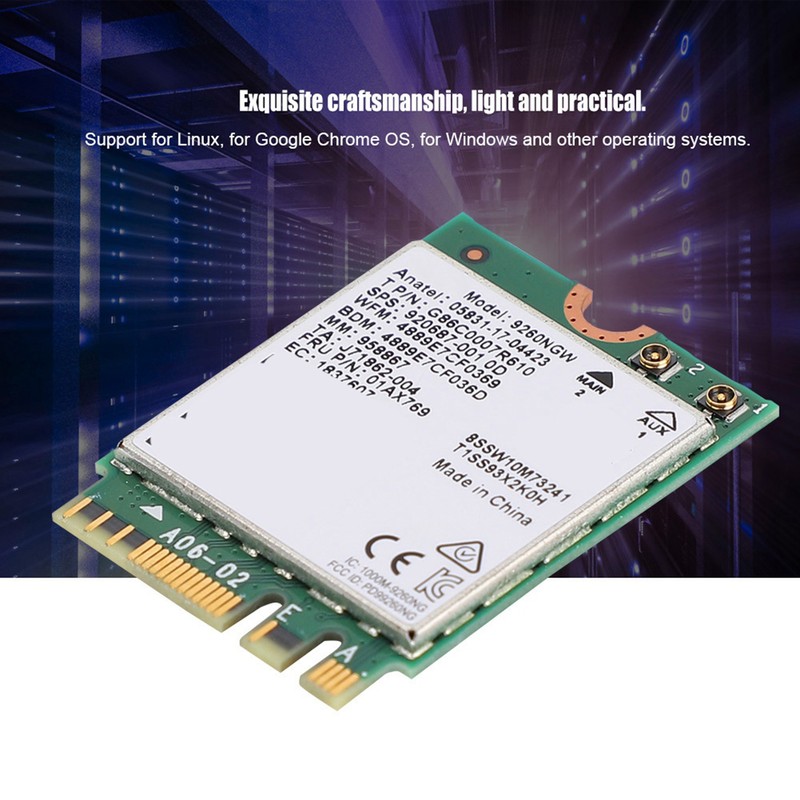 1、Supports desktop, all-in-one, advertising, notebook, small computer and other devices with the same interface, stable network speed, good signal. 2、Bluetooth 5.0 has a signal range of 4 times that of Bluetooth 4.2 low power version under the same power. 3、Support for Linux, for Google Chrome OS, for Windows and other operating systems. 4、The for Intel Wireless AC 9260 delivers a theoretical speed of 1.73 Gbps with 160 MHz channel, which is nearly 12 times faster than today's 1x1 BGN (150 Mbps) Wi-Fi. 5、Fast transmission speed, transmission speed of up to 1.73Gbps ensures high data transmission efficiency, internet smoothness and high signal strength.