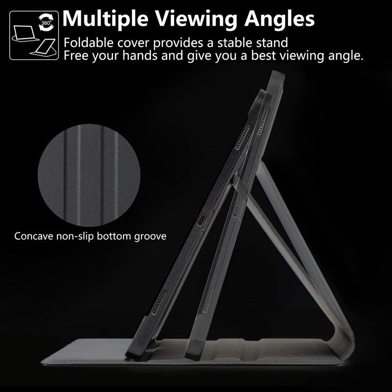 - ✔【Multi-Angle Stand】The foldable cover provides a strong stand for both viewing and typing. It can be adjusted to multiple angles, making it convenient for hands-free use and allowing you to find the optimal viewing position. This comfortable viewing experience helps to prevent eye strain and enables you to enjoy watching movies or TV shows for extended periods of time.